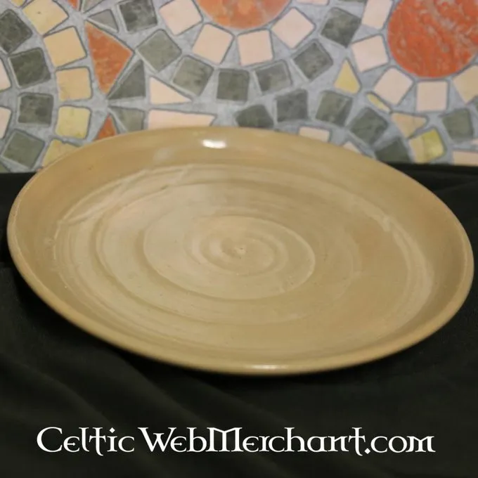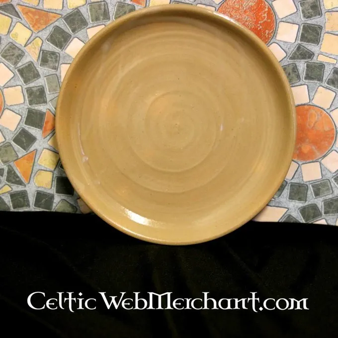 Dit middeleeuwse aardewerk bord is een replica van 15de eeuwse originelen. Borden zoals deze werden door alle standen van de bevolking gebruikt. Ze werden hoofdzakelijk in Noord- en Centraal-Europa gebruikt.