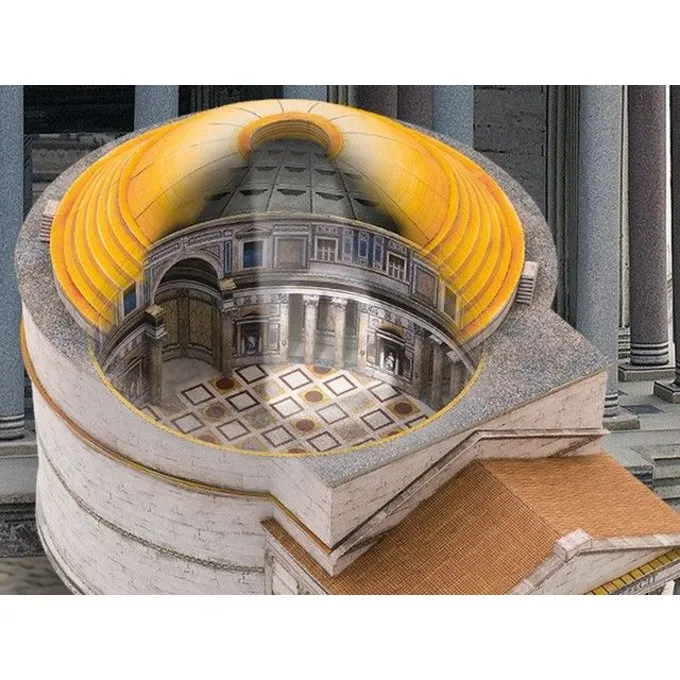 Het Pantheon is misschien wel het meest indrukwekkende Romeinse bouwwerk ooit gemaakt. Deze bouwplaat is gemaakt van karton, bedrukt in acht kleuren. Hij is gemaakt op schaal 1:300 en heeeft een gemiddelde moeilijkheidsgraad. De bouwplaat is 28 x 19 x 16 cm groot. In het midden van de koepel is een ronde opening aangebracht, waarvia naar de hemel kan worden gekeken. De vloer van dit bouwwerk is ligt aflopend, zo wordt regenwater uit het gebouw weggevoerd. De koepel is gemaakt van ongewapend beton, een Romeinse uitvinding. Het Pantheon, dat in 125 door keizer Hadrianus volledig herbouwd werd, was tot in de 16de eeuw de grootste overhellende koepel ter wereld.