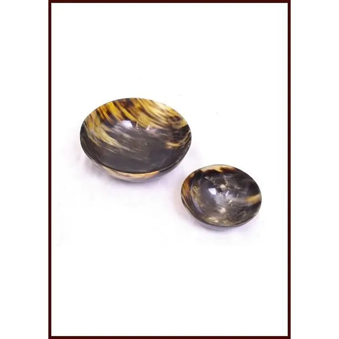 Dit hoornen schaaltje is met de hand gemaakt. Hij heeft een diameter van 10 cm en is licht gepolijst. Dergelijke schalen werden de gehele geschiedenis door gebruikt.