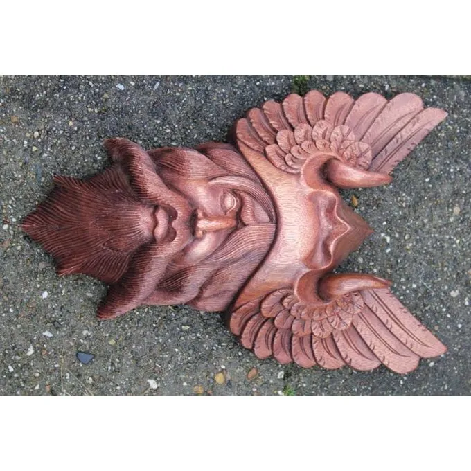 Deze wanddecoratie toont de Noorse oppergod in al zijn glorie. Hij heeft een lange baard en snor en draagt zijn helm. Dit houtsnijwerk is geheel handgemaakt en is 40 x 25 cm groot.