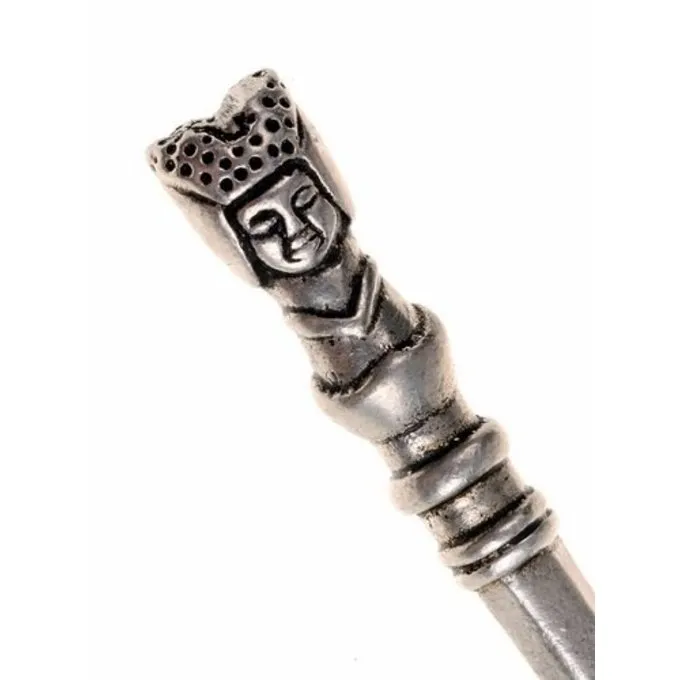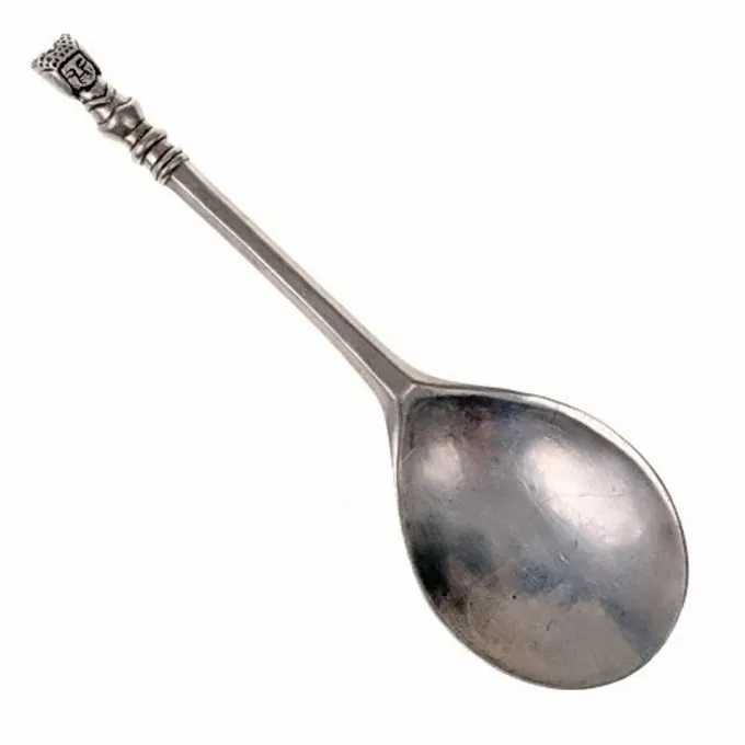 Deze laatmiddeleeuwse lepel is gemaakt van tin. De steel van de lepel is gedecoreerd met een meisjeshoofd. Het historische origineel van de lepel is oorspronkelijk gevonden in Engeland.