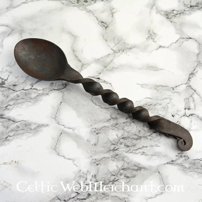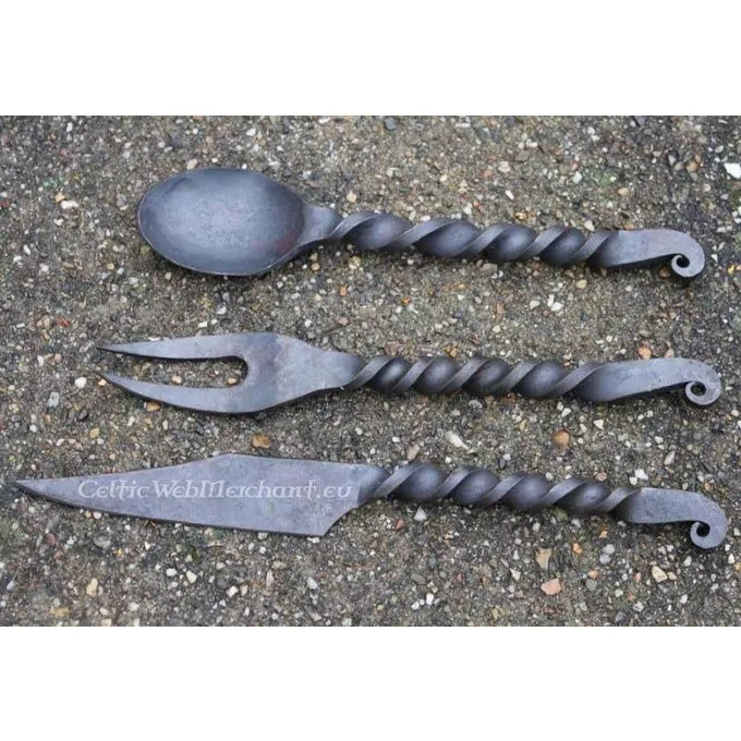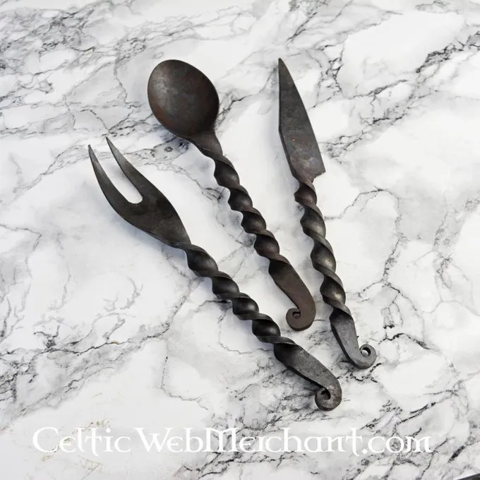 Deze bestekset is een replica van laat middeleeuws bestek en is op authentieke wijze met de hand gemaakt.