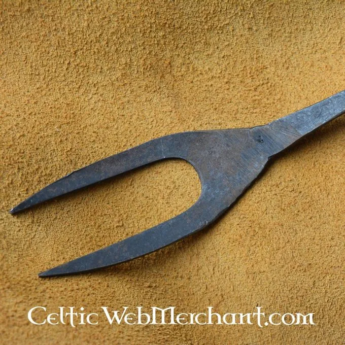 Deze vork is gemaakt naar verschillende originelen. Vorken zoals deze werden uitsluitend gebruikt voor het opdienen van voedsel. Later, in de 16de eeuw werden vorken pas gebruikt voor het eten van voedsel.