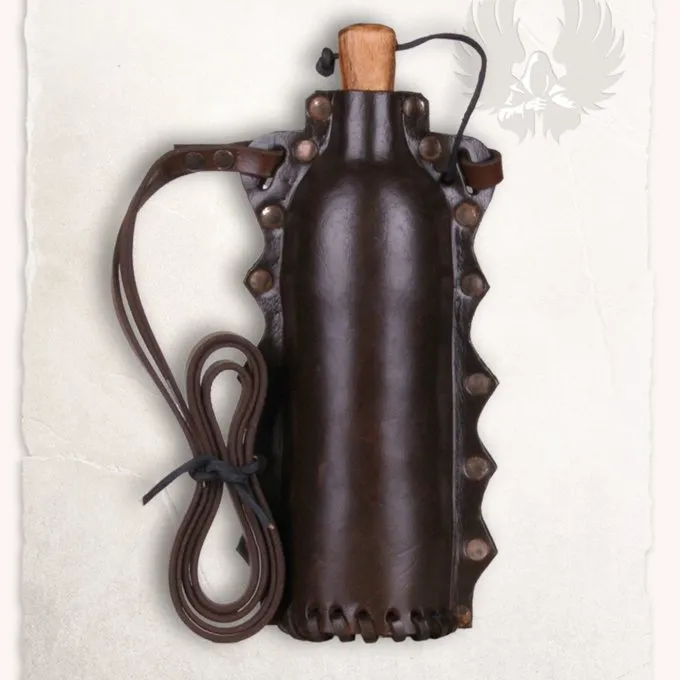 Materiaal: leer, kunststof / Inhoud: 0,5 l / Kleur: bruin / Lengte: 23 cm / Breedte: 11 cm / Gebaseerd op een historisch origineel
