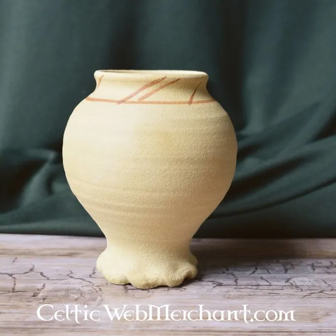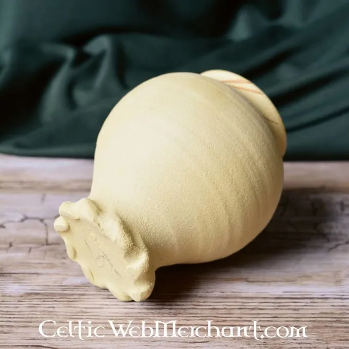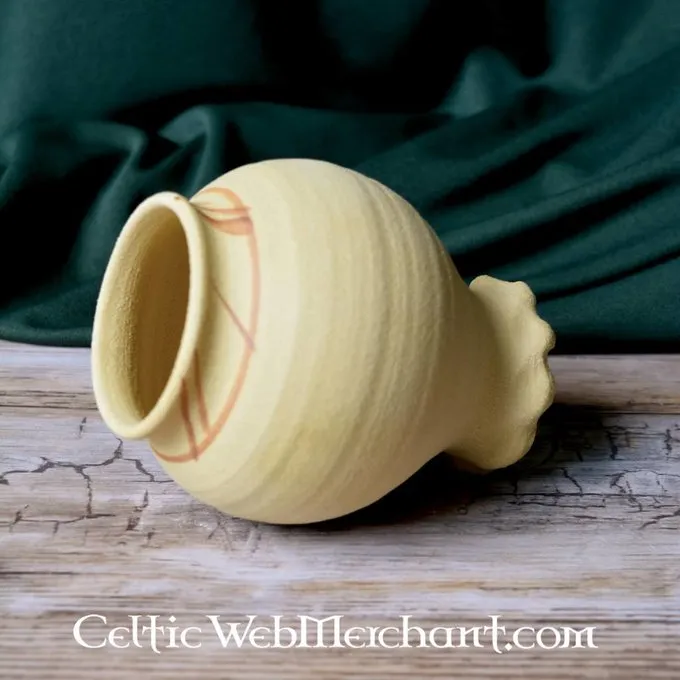 Productdetails: Hoogte: 10.5 cm / Breedte: 9 cm / Inhoud: 350ml / Materiaal: Klei, Pingsdorfwaren / Productiemethode: Handgedraaid / Gebaseerd op een historisch origineel: Ja /