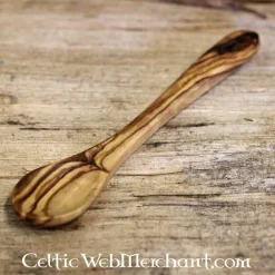 Deze lepel is gemaakt van olijfhout en is 12 cm lang.