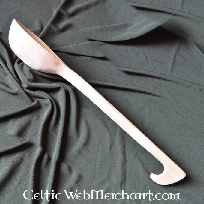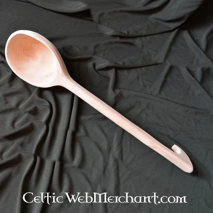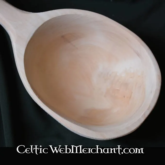 Deze pollepel is gemaakt van espenhout. Hij is 48 cm lang en heeft een lepel van 8 cm breed. Hij is door de haak aan de achterkant gemakkelijk op te hangen.