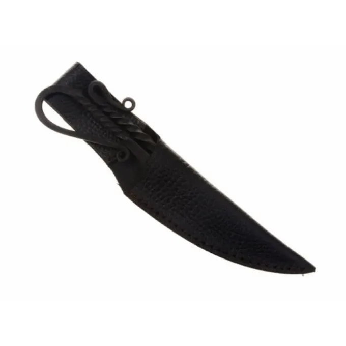 Materiaal: 1085 koolstofstaal 58-60 HRC, leer / / Lengte mes: 19 cm / / Formaat kling: 10 x 2,5 cm / / Snede: scherp / / Levering incl. schede / / Gebaseerd op een historisch origineel