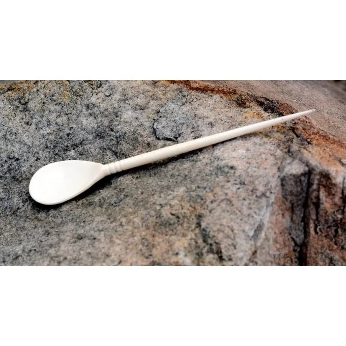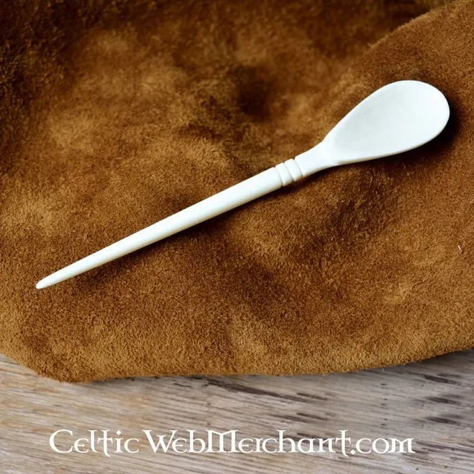 Deze benen lepel is een replica van Romeinse originelen die tussen de 1ste en 4de eeuw n.Chr overal in het Romeinse rijk werden gebruikt. Originelen zijn o.a. teruggevonden in Londen, York, Ostia, Appia Antica (Rome) en Pompei.