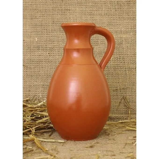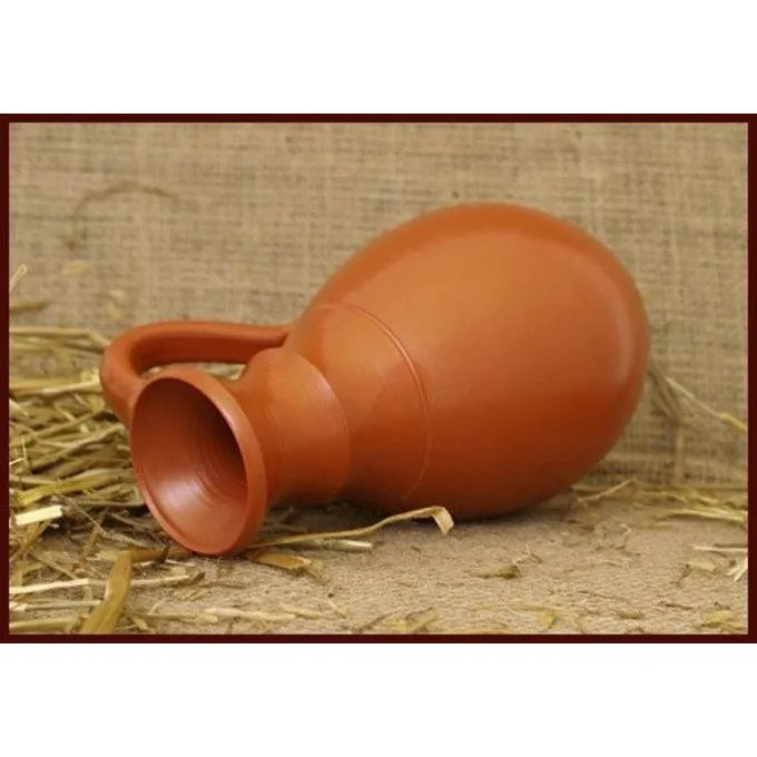 Deze kruik is gemaakt van mediterraanse klei en is gegoten (een Romeinse uitvinding), wat wijst op massaproductie. Op het hoogtepunt werden er ongeveer één miljoen terra sigillata voorwerpen per jaar geproduceerd.