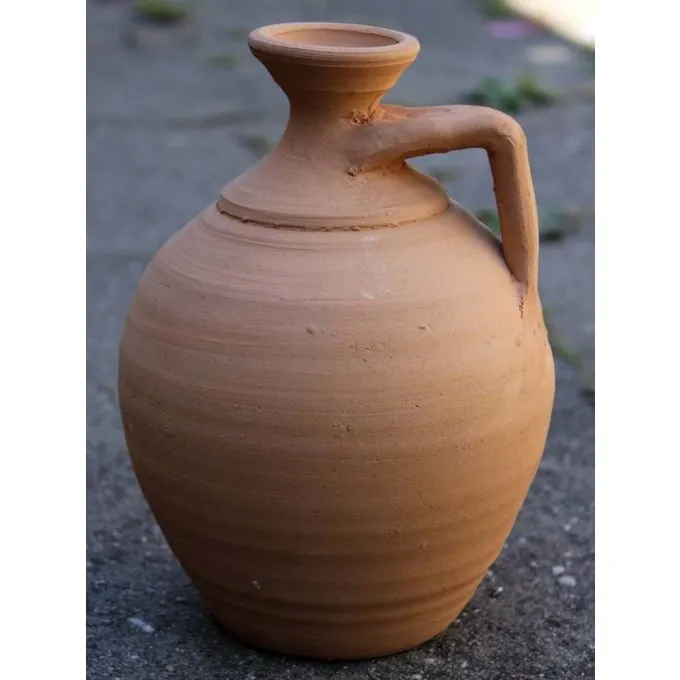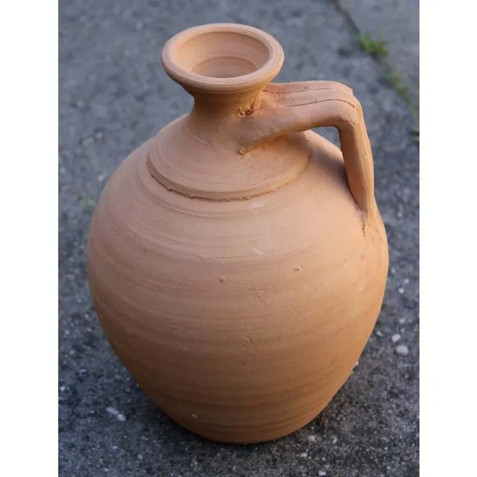 De kruik is geheel handgemaakt en is 18 cm hoog, heeft een diameter van ca. 14 cm en weegt ongeveer 600 gram.