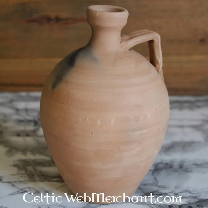 Deze kruik is gemaakt naar diverse Romeinse modellen. Dergelijke kruiken werden meestal lokaal gemaakt en in het gehele Romeinse rijk gebruikt.