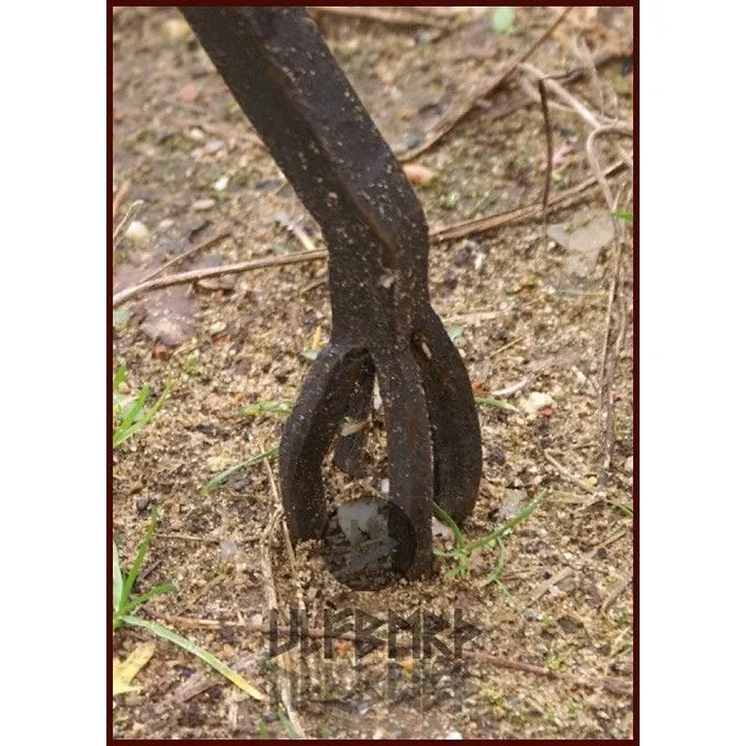 Deze driepoot is onmisbaar voor de historische keuken. Hij heeft benen van 155 cm lang, waardoor hij ook voor een grotere kampvuurplaats geschikt is. Gewicht 9,5 kg. Levering exclusief pan en emmer.