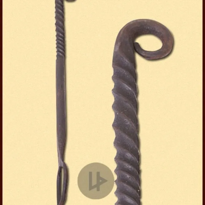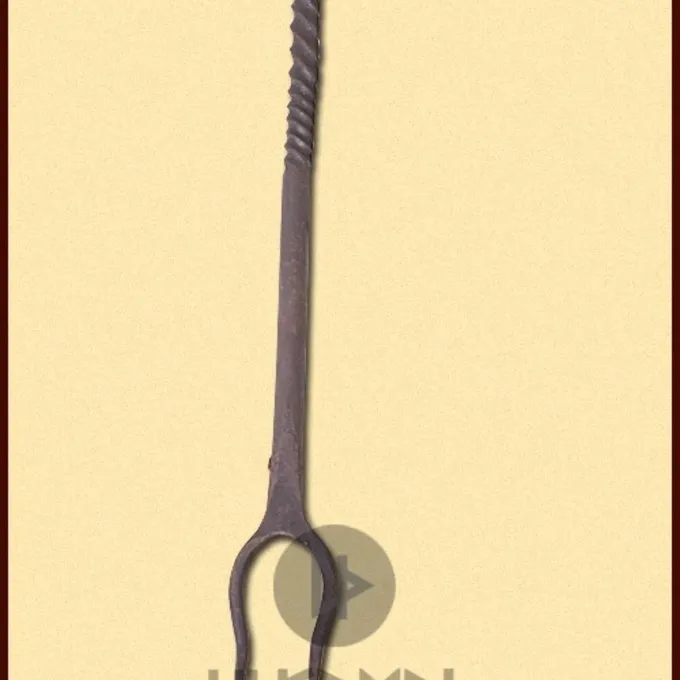Deze vork is handgesmeed van ijzer. Hij heeft een gedraaid patroon aan de bovenkant en een gekruld uiteinde. Een aanwinst voor re-enactors van de Middeleeuwen en Renaissance.